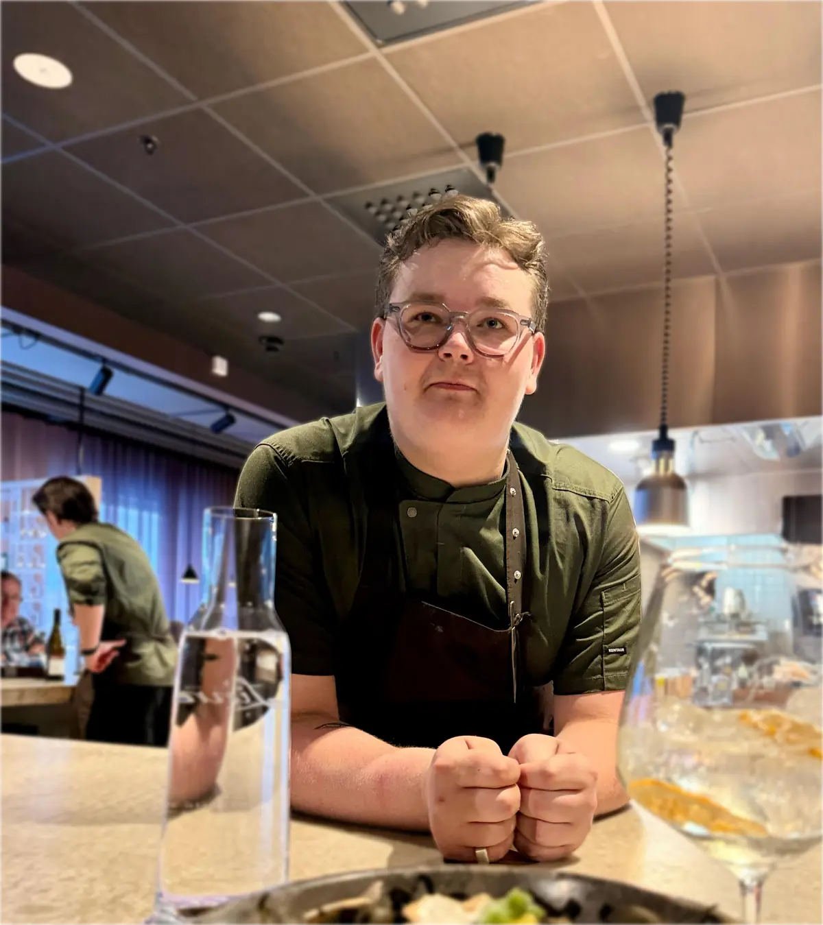 Albin Berglund är en av svensk gastronomis mest lovande unga talanger. Som finalist i Årets Kockelev 2024 har han redan gjort avtryck på den nationella matscenen. Vid sidan av sina studier på Altinska gymnasiets restaurangprogram är han en självklar del av teamet på Naturaj i Sundsvall. Där bidrar han inte bara med skicklighet i köket, utan också med närvaro, värme och passion – något som märks i samtalen över bardisken där rätterna serveras. Trots sin unga ålder utstrålar Albin ett imponerande lugn och professionalism. Albin visar att ålder bara är en siffra när talang och drivkraft får ta plats – och att framtiden för svensk gastronomi ser mycket ljus ut.